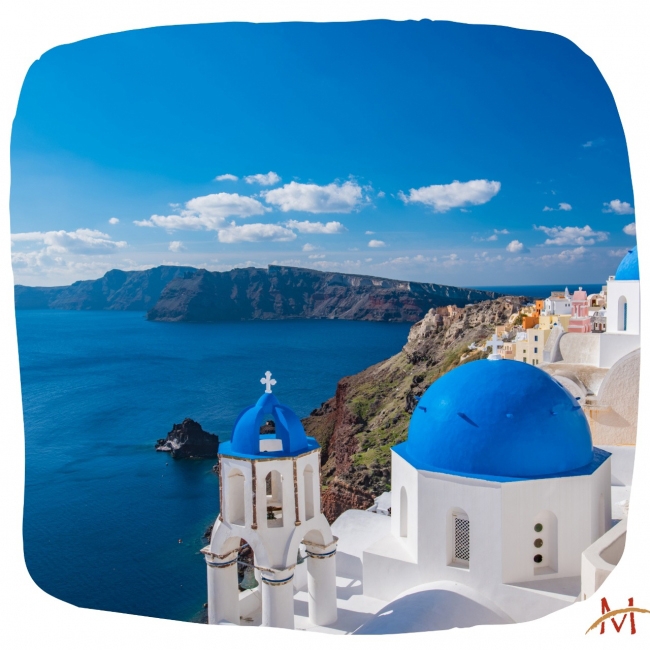 Traslado a primera hora al puerto. Embarcamos en un ferry rápido hacia la isla de SANTORINI, llegada sobre las 11 hrs. en autobús, entre bellísimos paisajes vamos a OIA, sin duda la más espectacular población de la isla, callecitas blancas llenas de vida, inmensas vistas sobre acantilados, restos de castillo y molinos de viento. Tiempo para pasear y almorzar. Tras ello conocemos THIRA, la capital de la isla. Sugerimos navegar hasta las aguas termales y recibir la puesta del sol desde una antigua y clásica embarcación mediterránea.